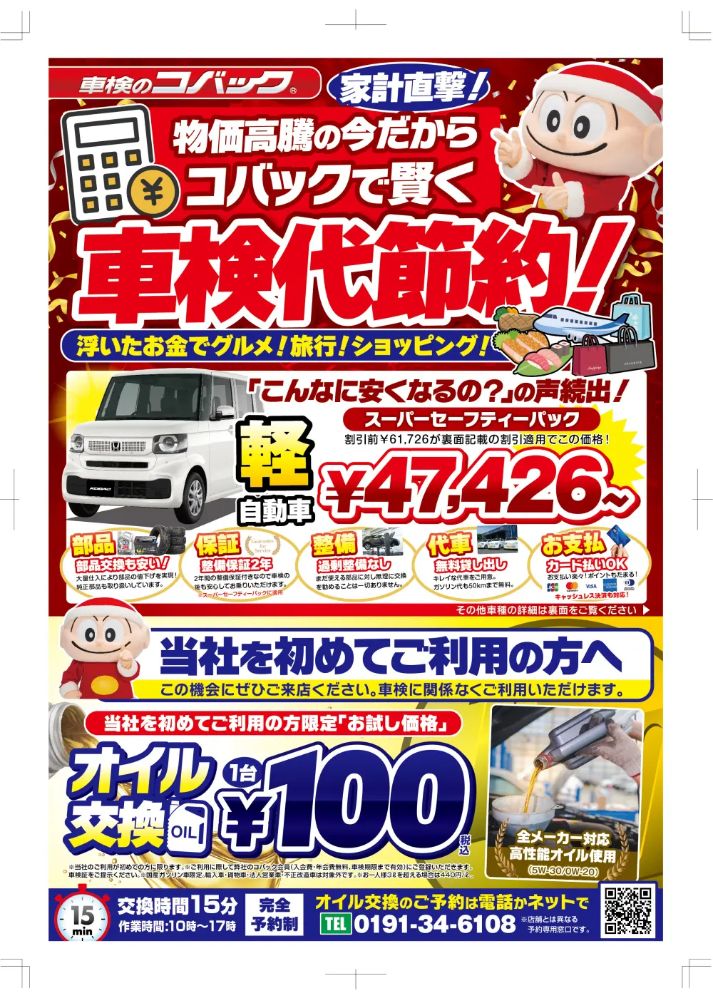 一関市を中心に車検サービスを提供している 車検のコバック一関川崎店・一関インター店は年間 約2,000台のお客様にご支持をいただいております。また定期点検、一般修理はもちろんのこと、新車や中古車の販売、車のキズ・へこみ直しも得意としています。 一関市周辺のお客様に寄り添った親身なサービスを心がけ、お客様の大切なお車をトータルでサポートさせていただきますので、お気軽にスタッフまでお声がけください!
