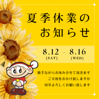 弊社では下記の期間を夏季休業とさせて頂きます。
